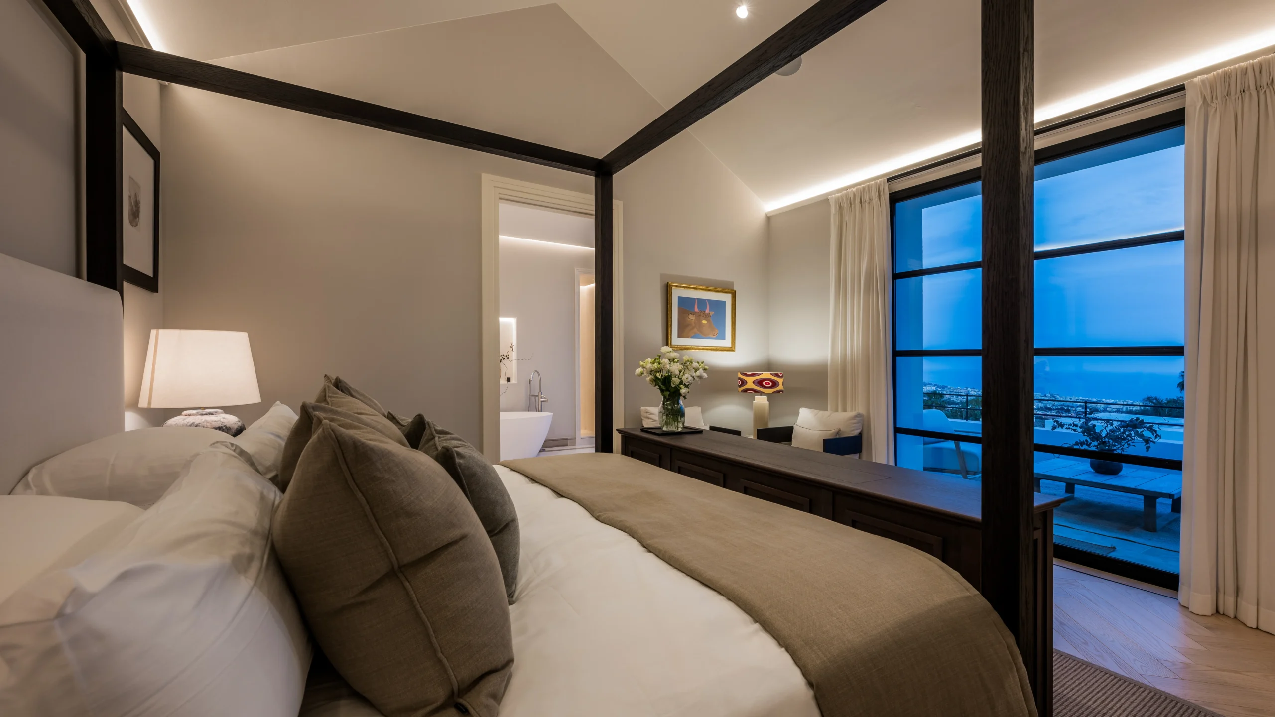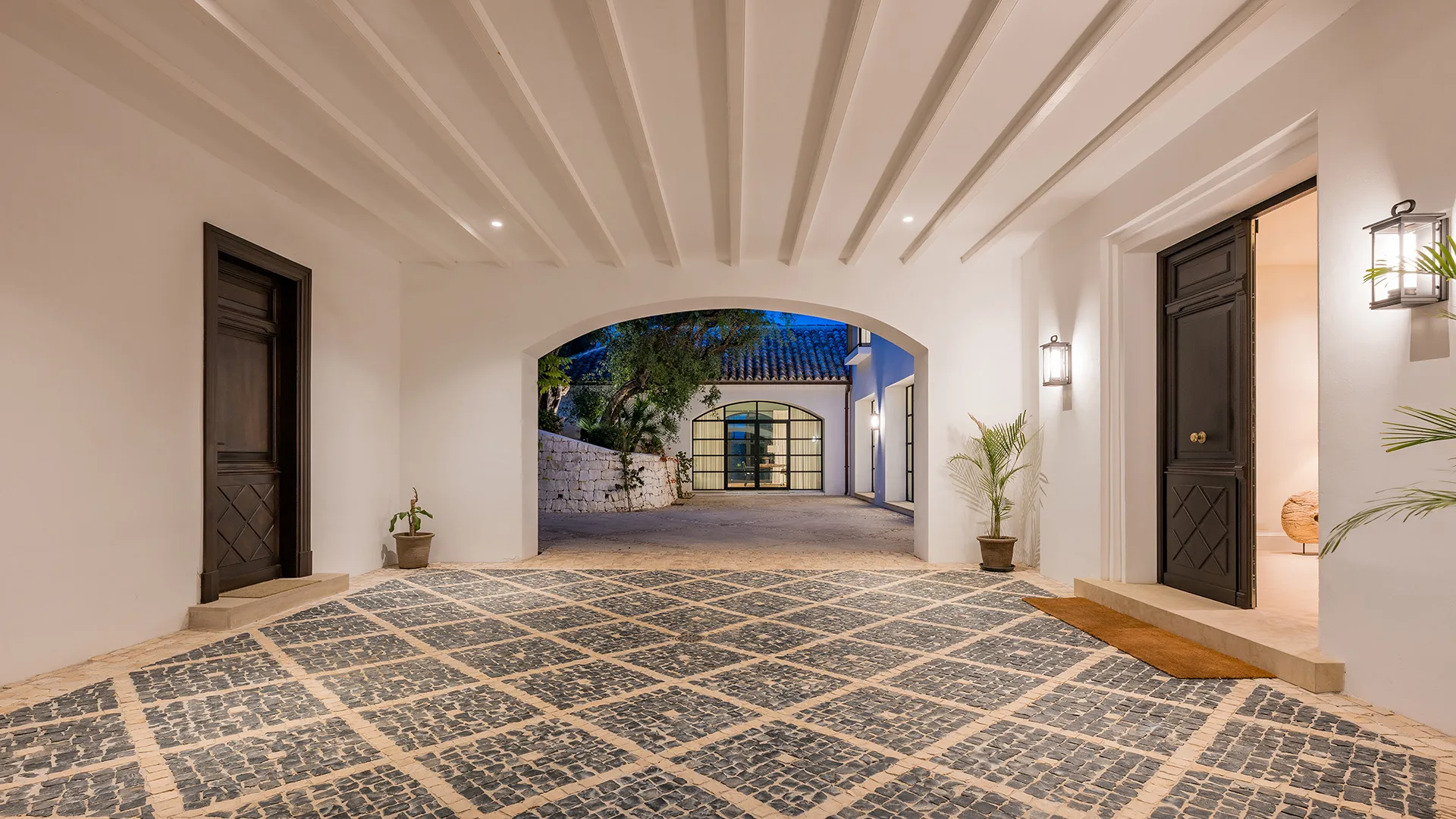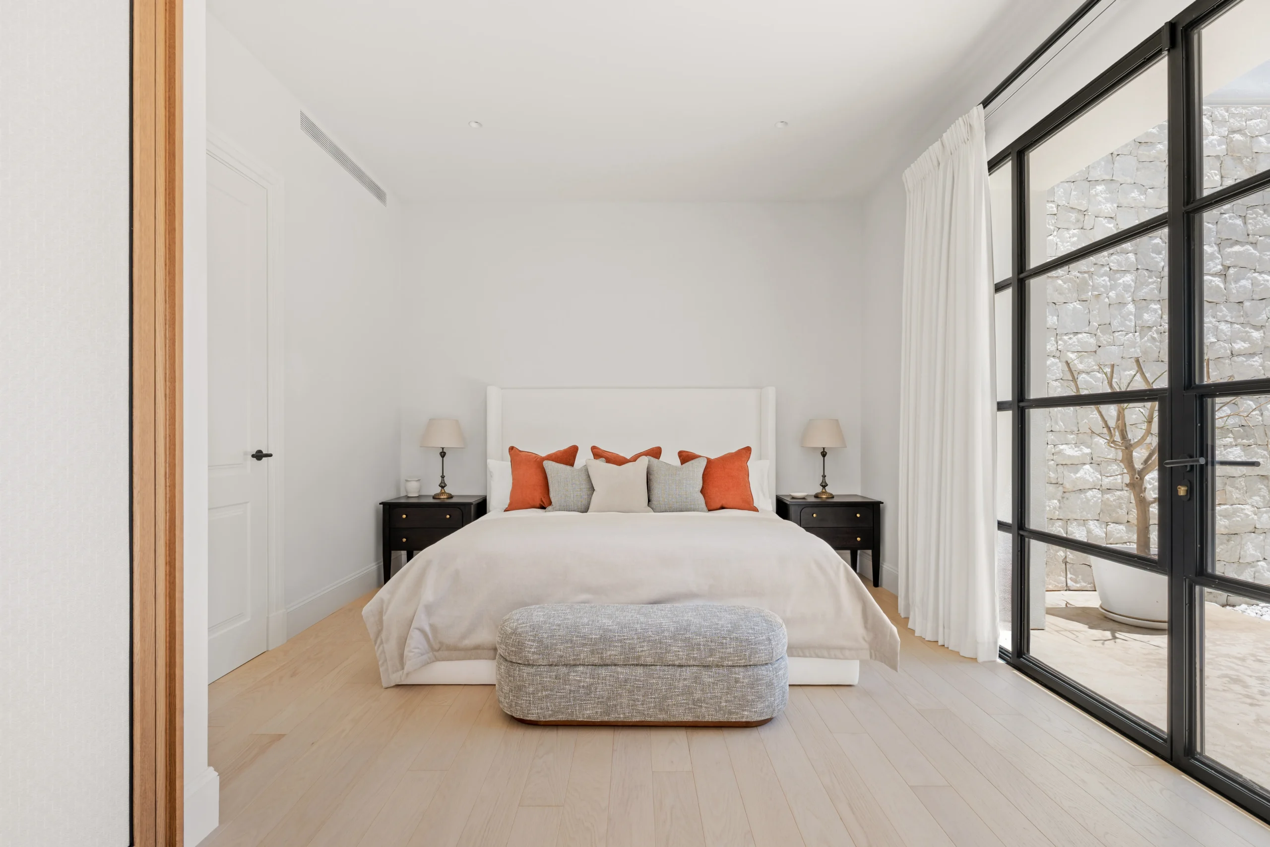 El interior cuenta con cinco suites de lujo con baño en suite, seis baños en total y un dormitorio adicional para invitados en un segundo edificio. Diseñada por la reconocida interiorista Rina Rankova, cada espacio destaca por su atención al detalle, domótica avanzada y sistemas de seguridad de última generación.