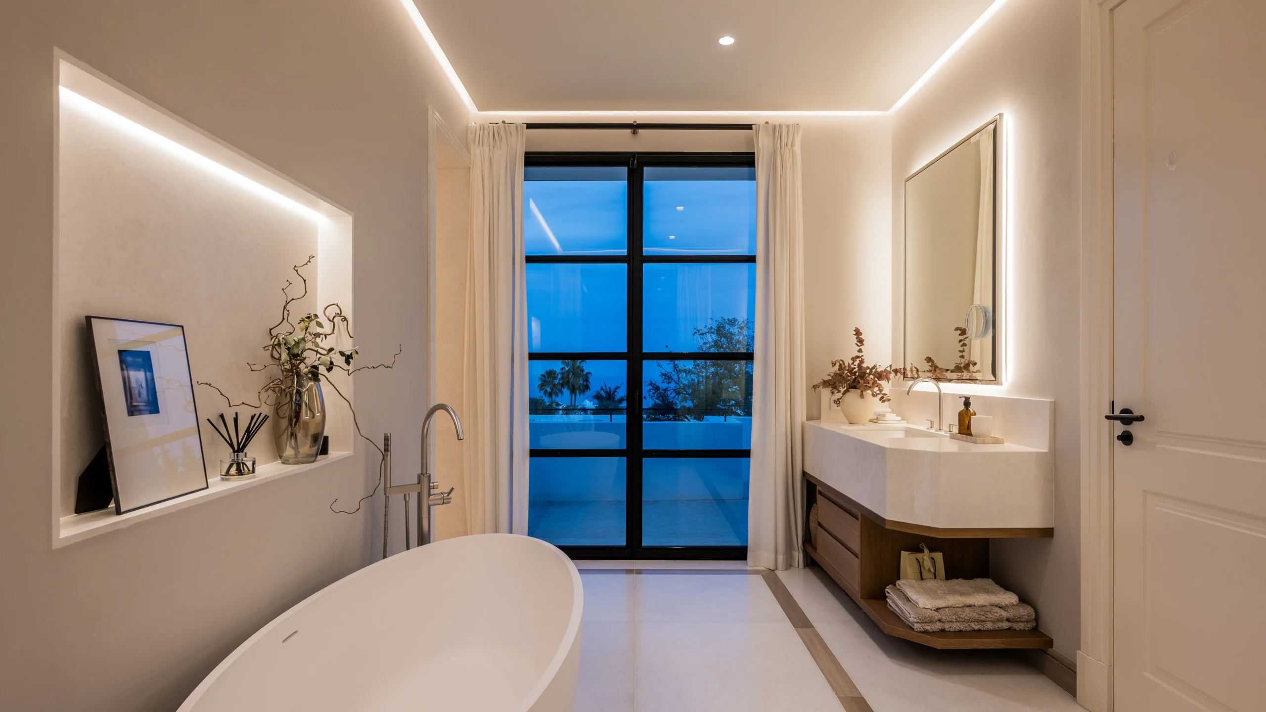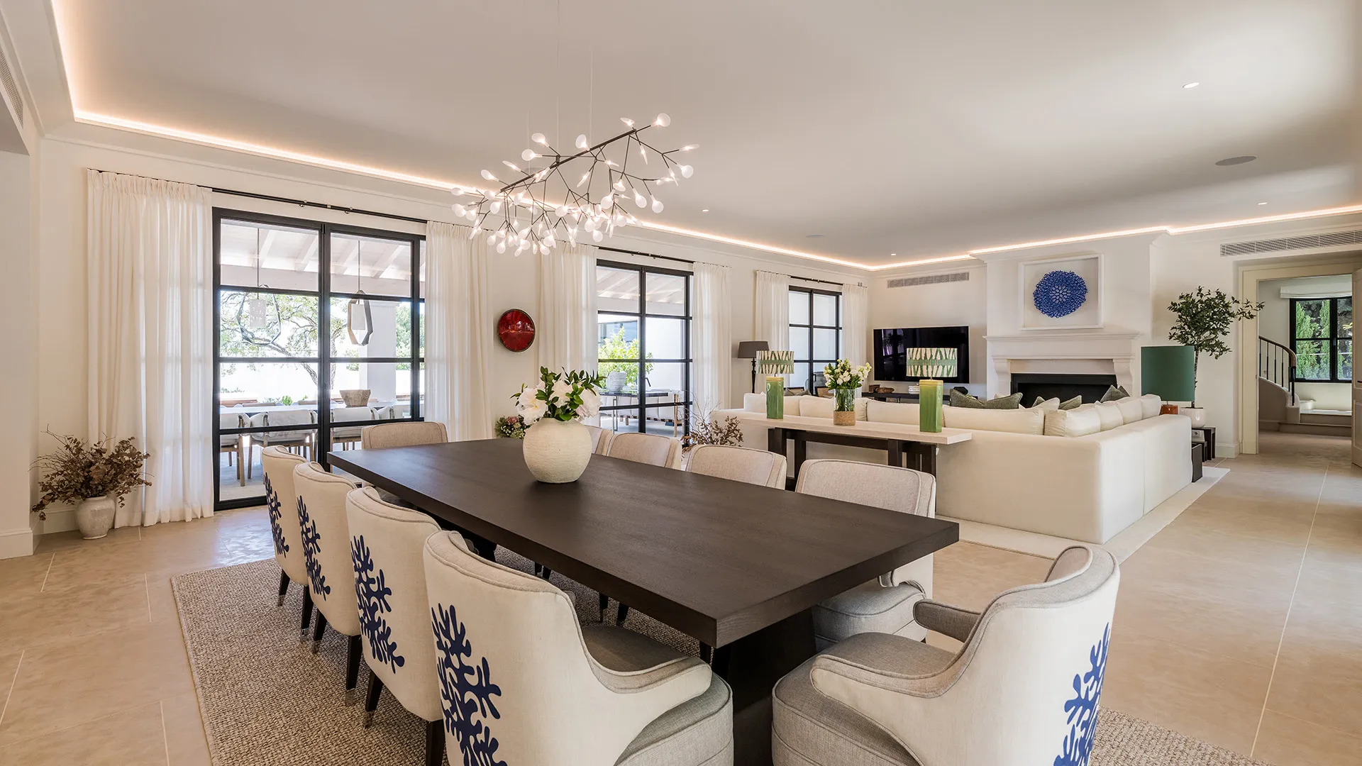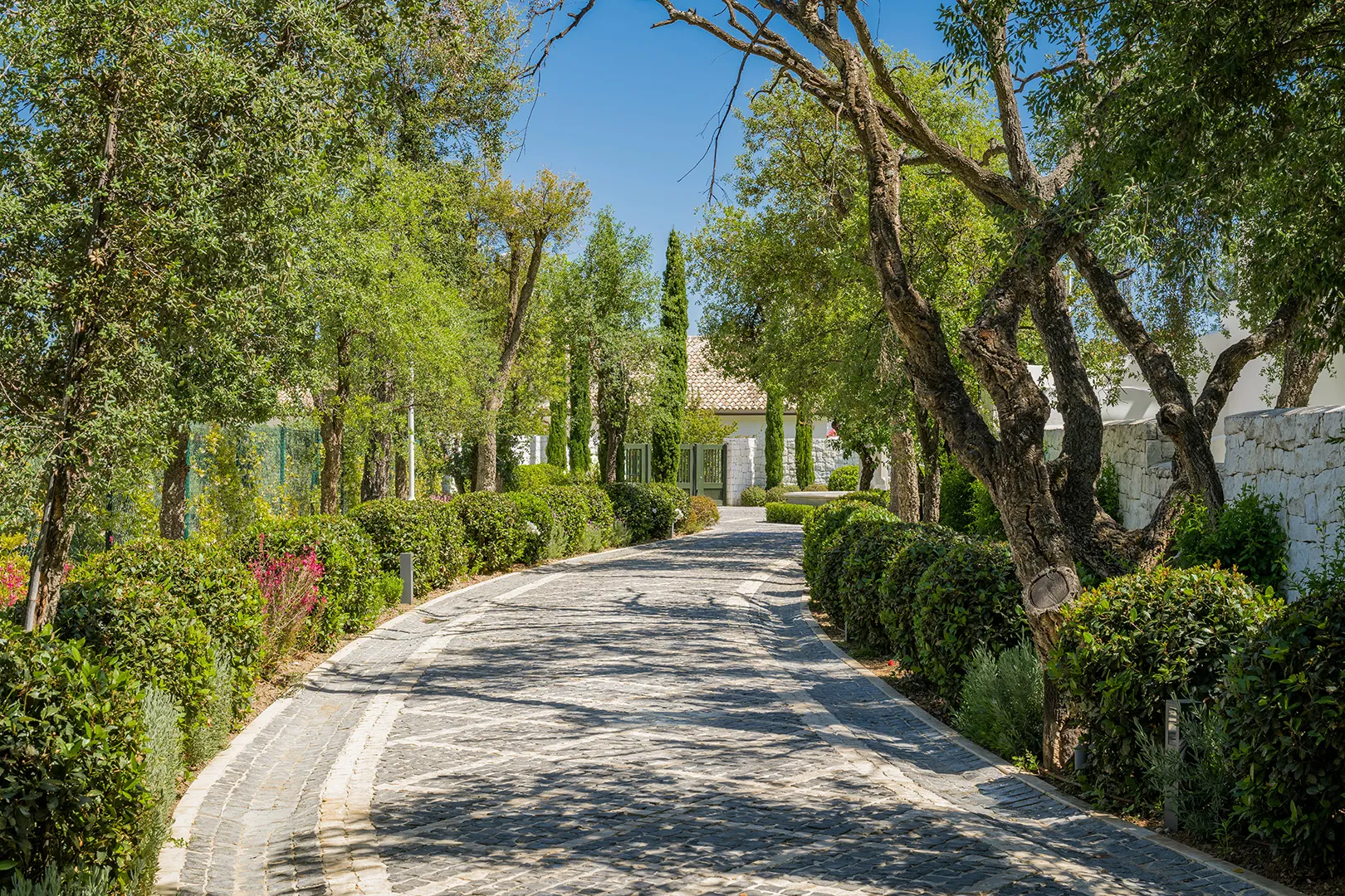 El interior cuenta con cinco suites de lujo con baño en suite, seis baños en total y un dormitorio adicional para invitados en un segundo edificio. Diseñada por la reconocida interiorista Rina Rankova, cada espacio destaca por su atención al detalle, domótica avanzada y sistemas de seguridad de última generación.