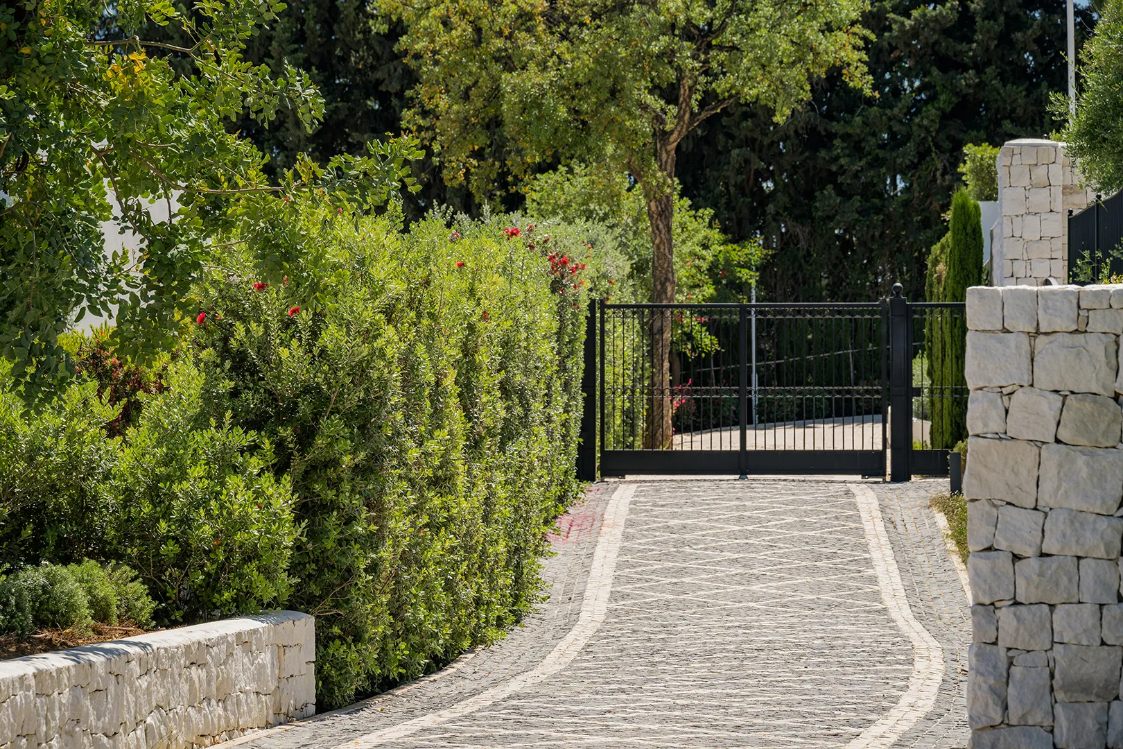 La parcela, bellamente ajardinada y rodeada de olivos centenarios, ofrece amplias zonas exteriores: piscina climatizada con jacuzzi, área chill-out, cocina exterior totalmente equipada y una gran terraza perfecta tanto para recibir invitados como para relajarse durante todo el año.