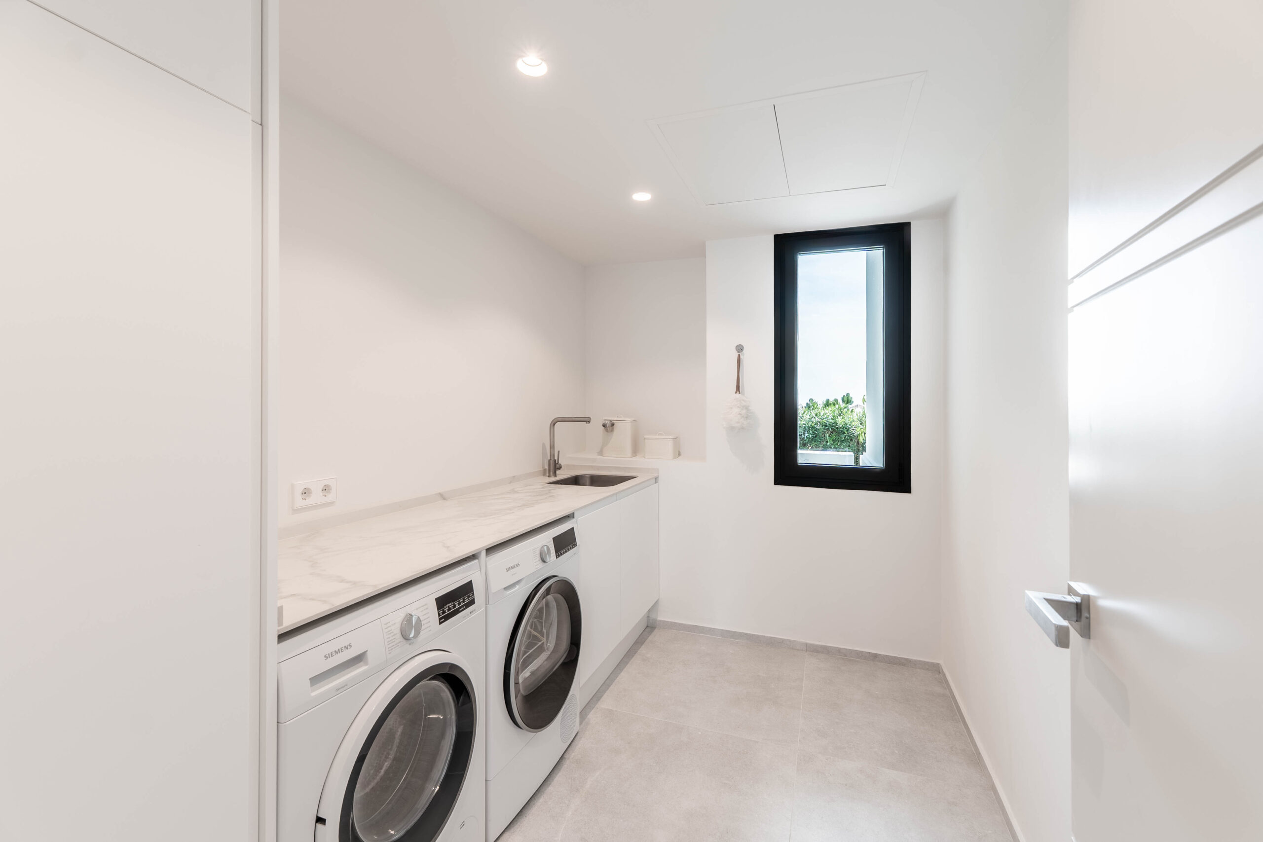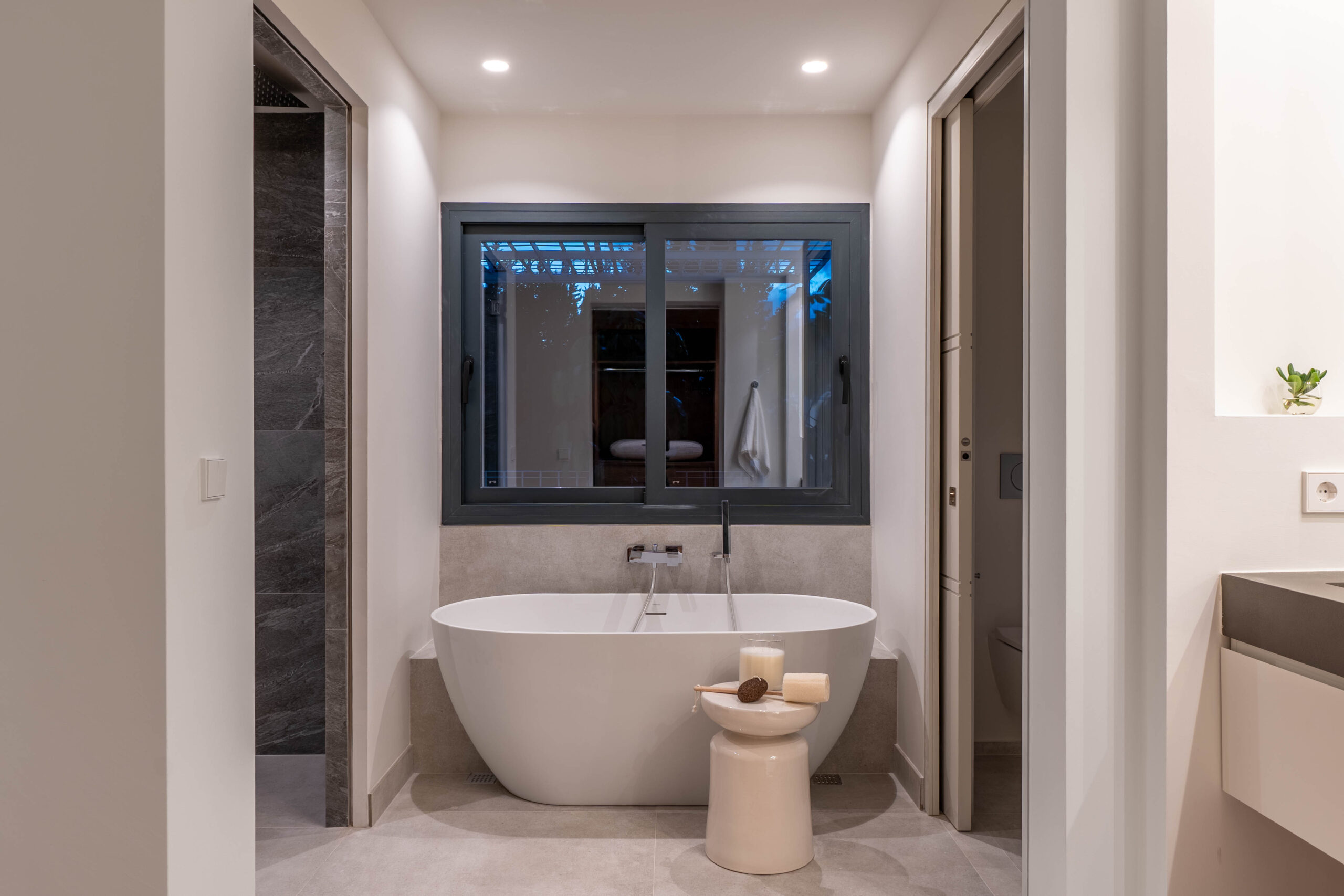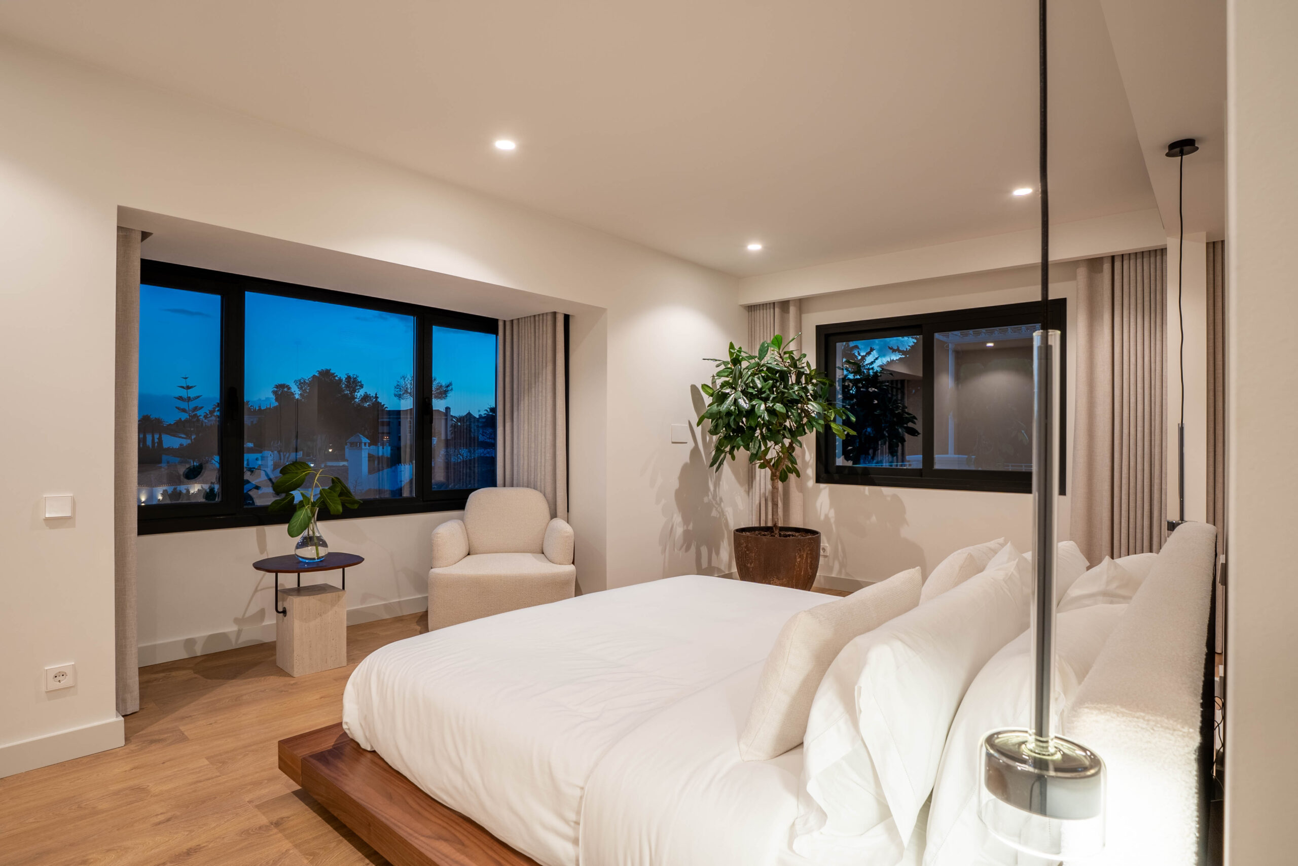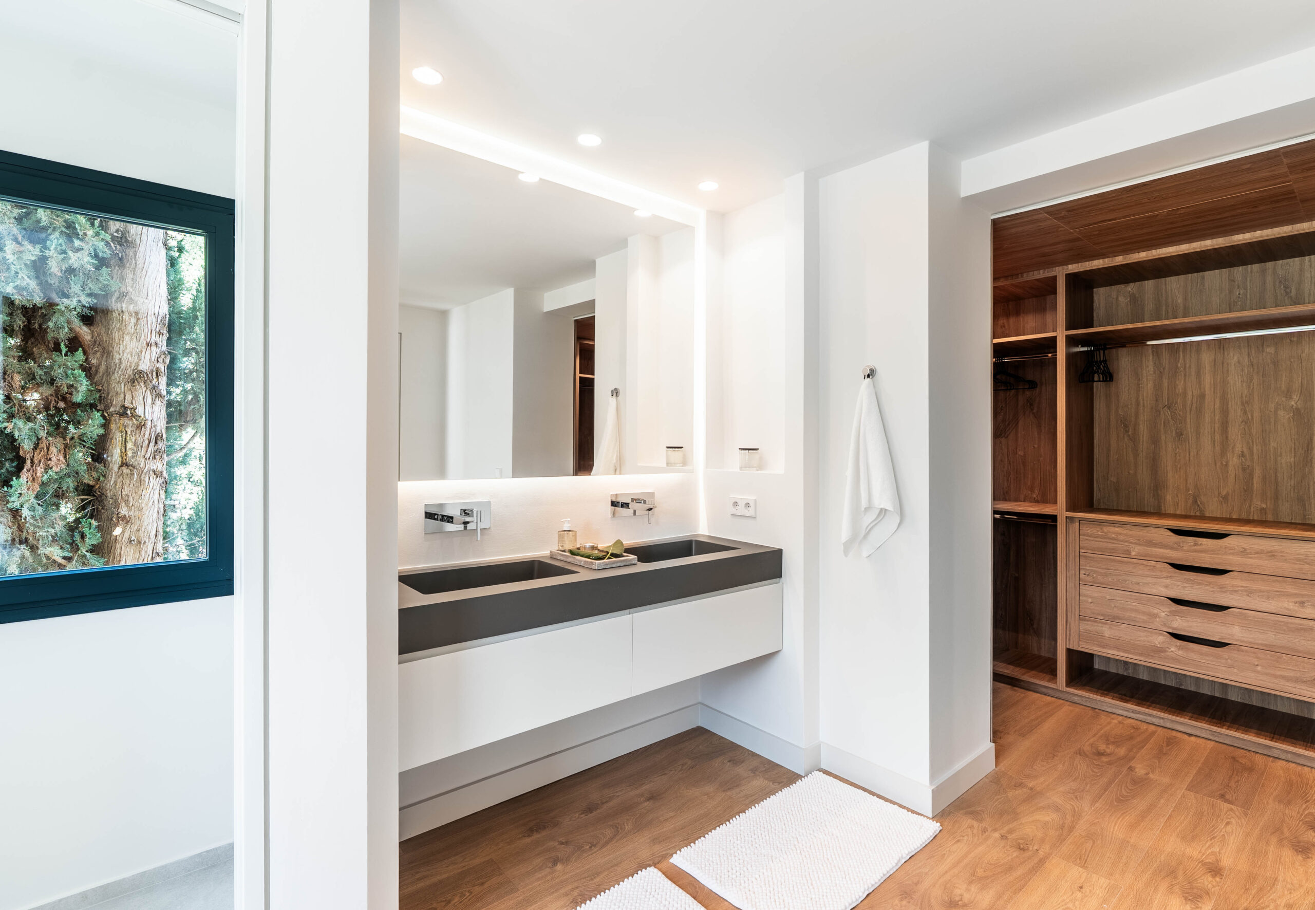 À l’étage, trois chambres en suite garantissent confort et intimité, la suite principale disposant d’un dressing et d’une terrasse privée avec vues panoramiques sur la Méditerranée. Entouré de golfs, boutiques de luxe et restaurants raffinés, ce projet est idéal comme résidence principale ou comme retraite exclusive.