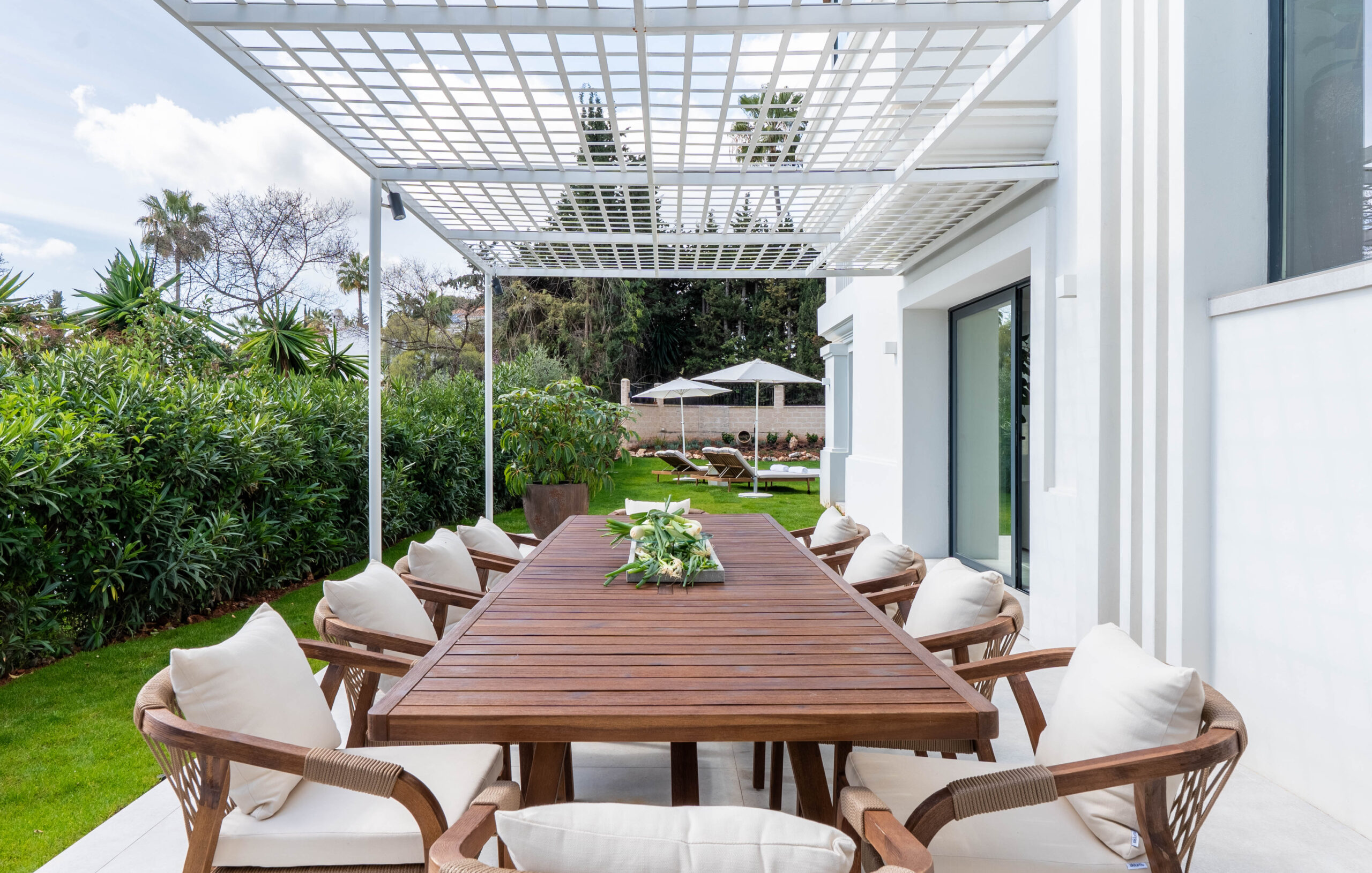 À l’intérieur, un plan ouvert baigné de lumière relie cuisine contemporaine, salle à manger et salon aux terrasses ensoleillées et au jardin paysager. À l’extérieur, piscine privée, espaces lounge et terrasse couverte créent un cadre parfait pour se détendre ou recevoir.