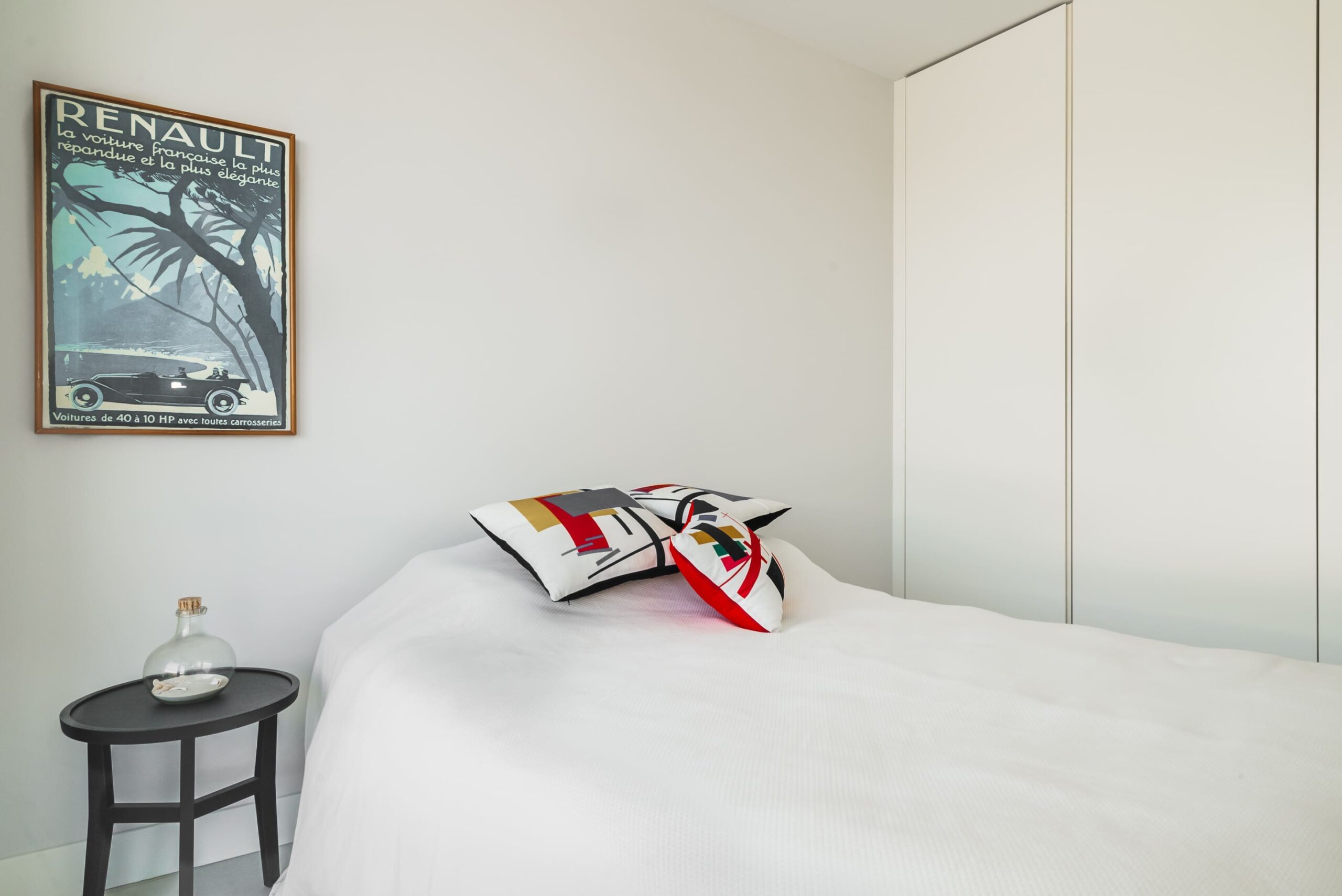 La cuisine est équipée d’appareils Gaggenau et s’intègre parfaitement à l’espace de vie, offrant un cadre fonctionnel et élégant au quotidien.