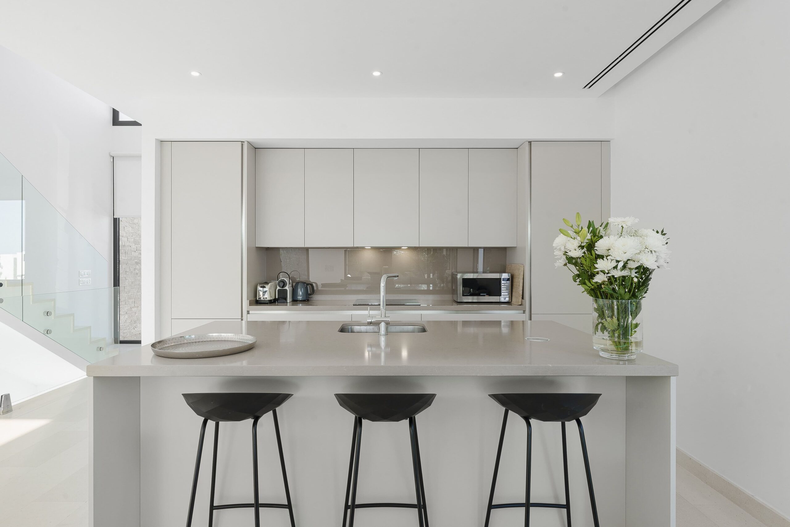La villa mitoyenne est meublée avec goût, offrant des finitions de haute qualité dans la cuisine et la salle à manger, ainsi qu’un mobilier de jardin soigneusement sélectionné, garantissant un confort optimal dans chaque espace de la maison.